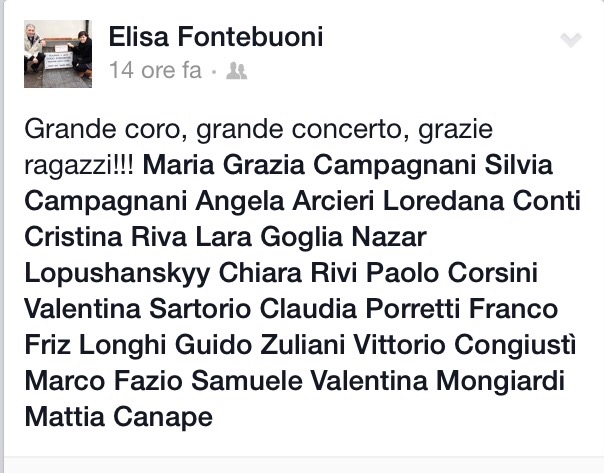 Concerti Germignaga: concerto di Natale del 19 dicembre 20 Dicembre 2014 Guido Zuliani Lascia un commento Se lo dice la maestra alias il capo…. Grazie a tutti